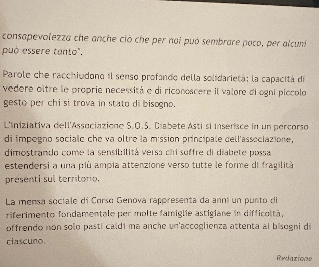 IN DATA 10/O1/2026 ALCUNI VOLONTARI DELL'ASSOCIZIONE SI SONO RECATI PRESSO LA MENSA SOCIALE DI ASTI PER DONARE ALIMENTI CON UN PARTICOLARE RIGUARDO PER I BAMBINI.